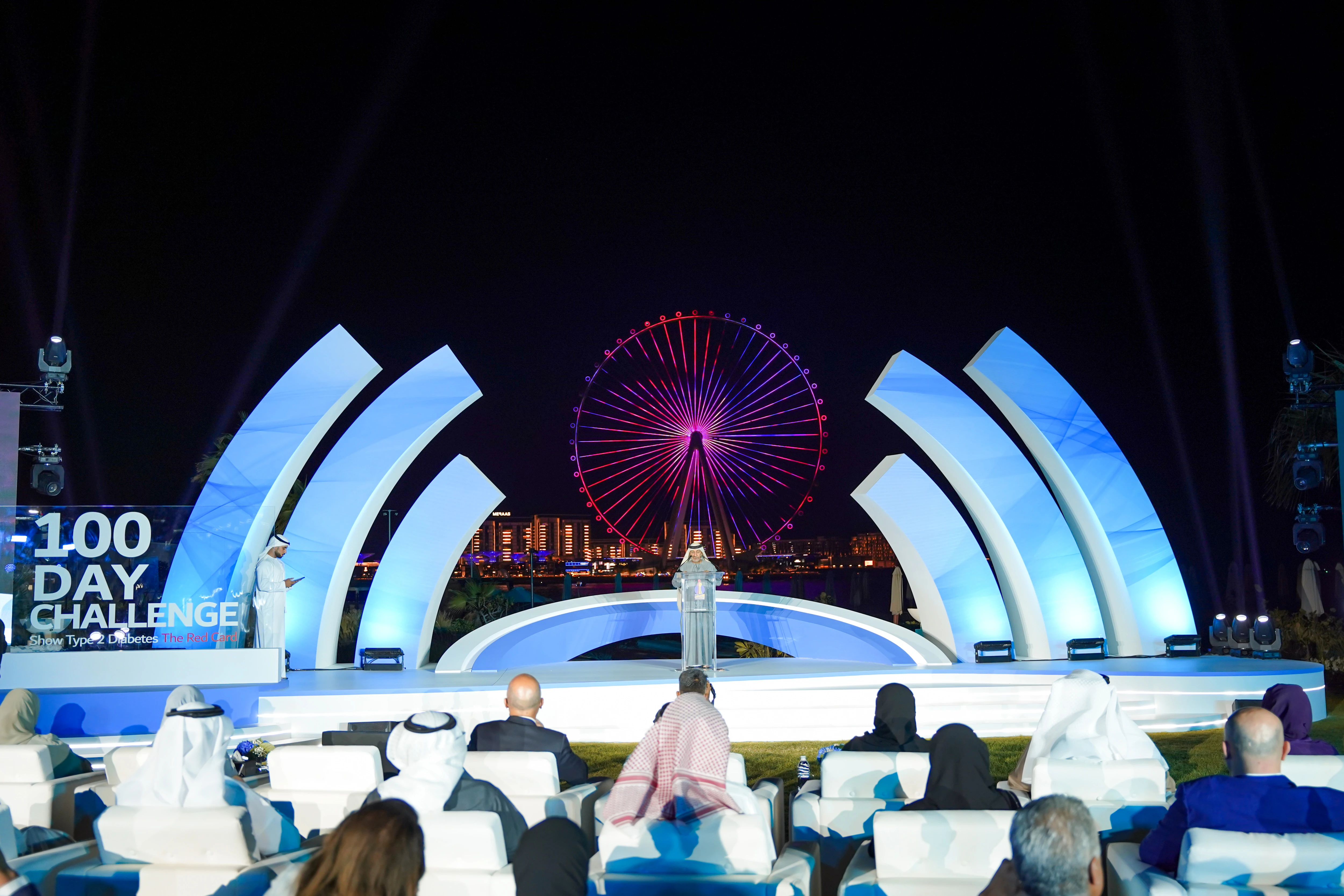 A choreographed drone show over the Dubai Frame depicted the campaign’s emblem, symbolizing unity in the fight against diabetes.